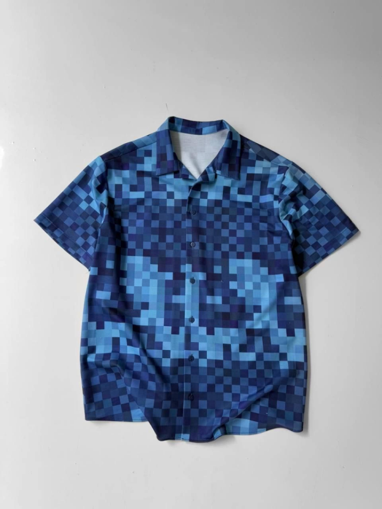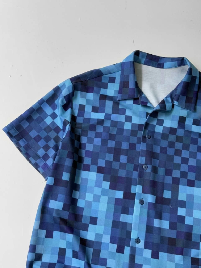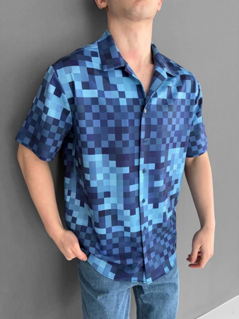 İki İplik Kumaş Baskılı Gömlek - Mavi