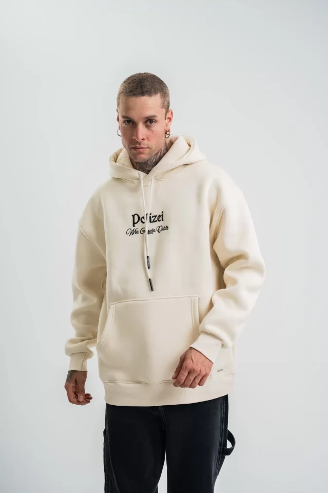 POLIZEI Premium Kalite Kapşonlu Dijital Patchli SweatShirt - Krem