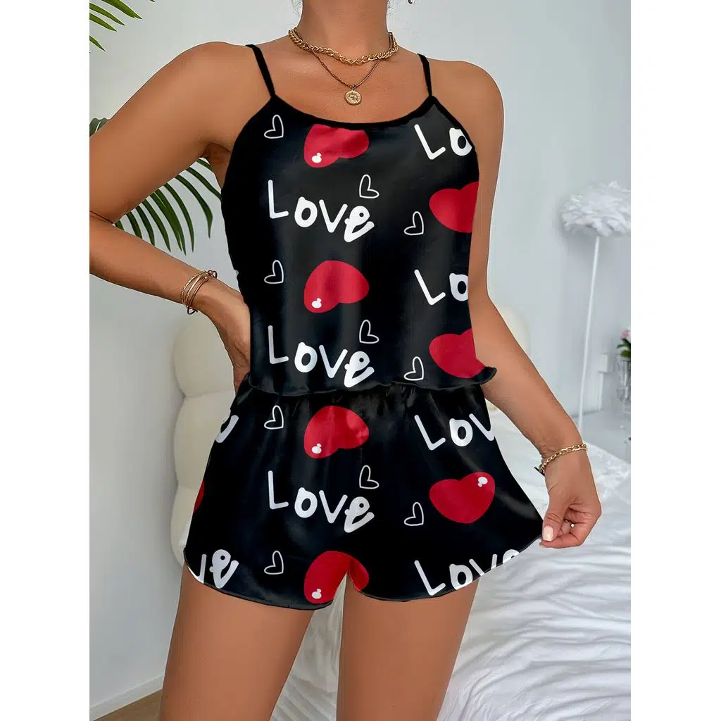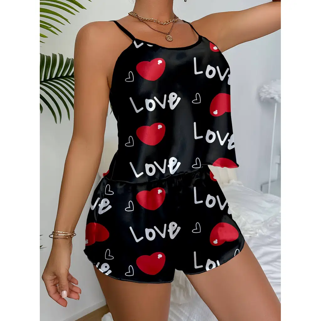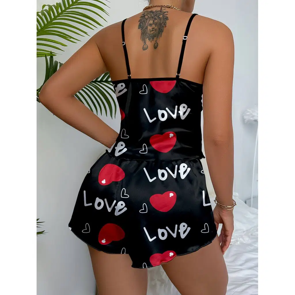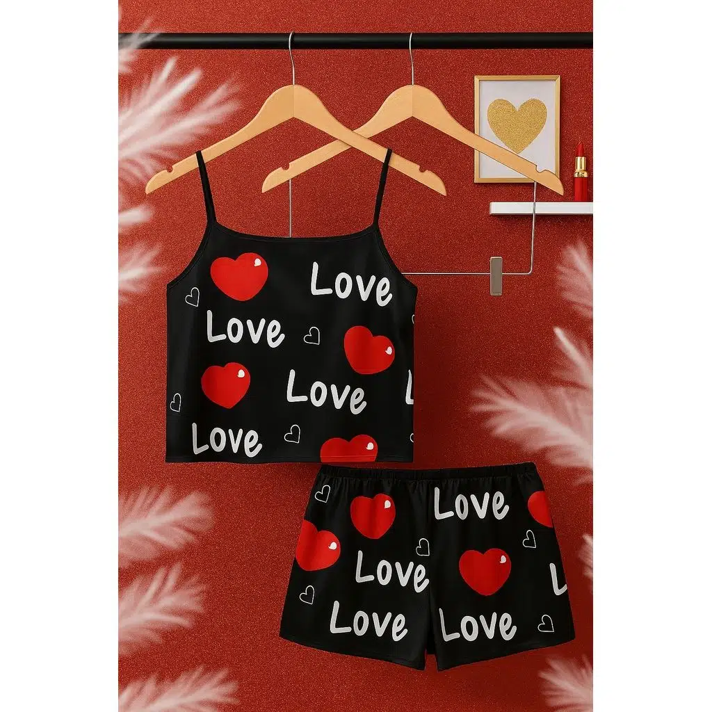 | Etiketler | Siyah Aşk Temalı Kalp Baskılı Saten Şortlu Kadın Gecelik Seti |
