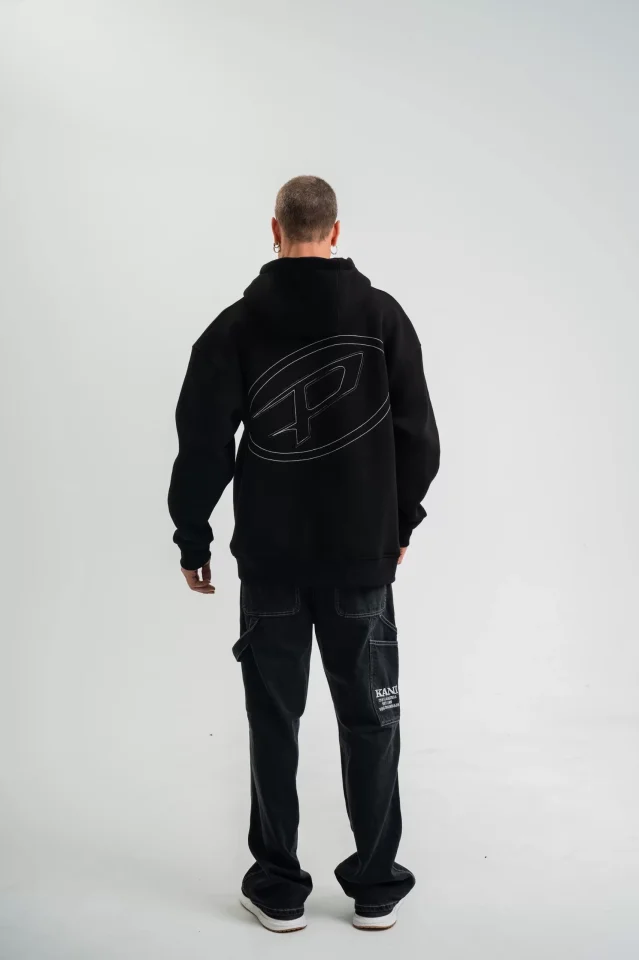Unisex Üç İplik Kapşonlu Nakışlı SweatShirt - Siyah
