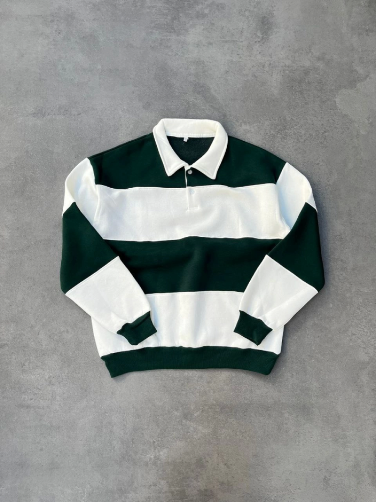 Unisex Üç İplik Parçalı Yakalı SweatShirt - Yeşil